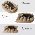 Švelnaus audinio, minkštas kilimėlis-lova šuniui. Užpildas - PP medvilnė, kuri labai minkšta, suteikia gražią formą, lengvai plaunama ir greitai džiūsta. Galima sulankstyti į guolį, sofą arba naudoti nesulankstant kaip stačiakampę pagalvėlę. Gaminio medžiaga: kukurūzų vilna.